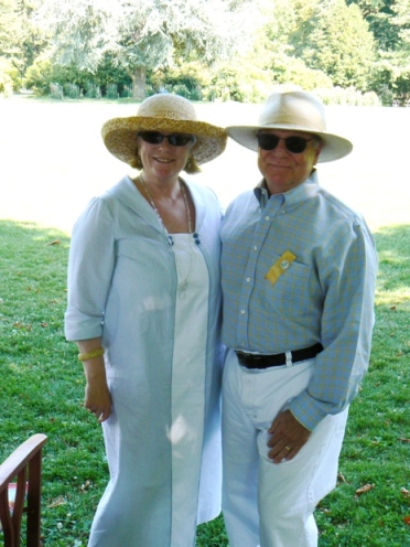 The cars lined the drive while people lounged in the shade of the large chestnut trees. Miss Candice and Marty share a meal together. |