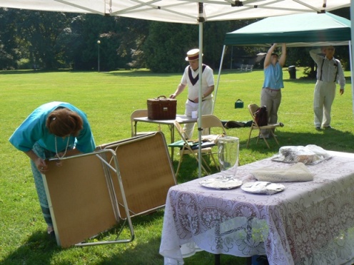all over the grounds in preparation to enjoy Left photo, seated at table (L-R): Miss Beverly, Miss Corky and Miss Marjorie. |