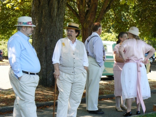 even noon yet. The lawns were meticulously mowed and edged. Flowers spilled from the overhead hanging pots on the lamp posts. Yes, we were all looking forward to having a great time with Gatsby and Friends!