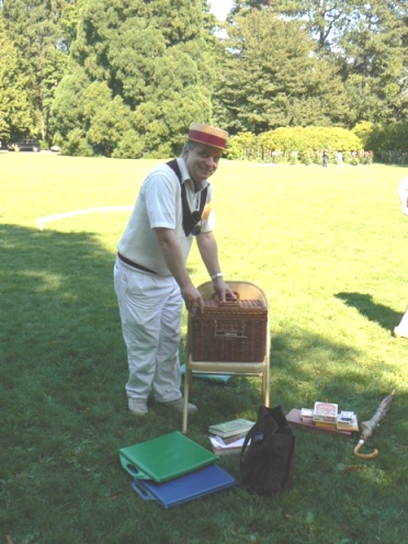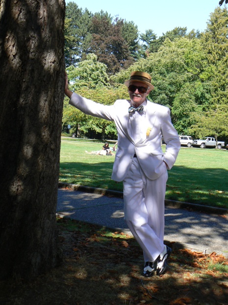 great in "summer whites", wing-tip shoes and boater hat. Here, he appears to be making sure this tree wouldn't fall on anyone... |