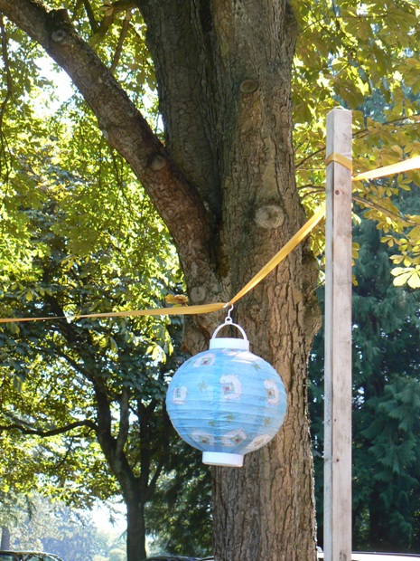 at one of the party lanterns. |