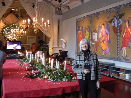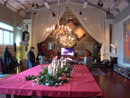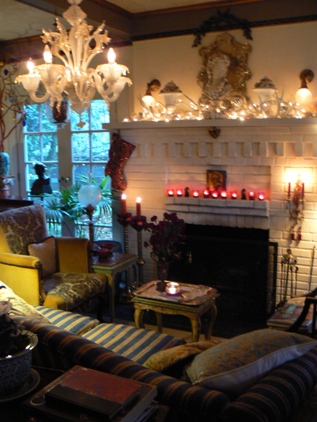 doorway to the private enclave of the residence. On this side of the former altar, the owners have decorated quite tastefully with antiques and a gorgeous Christmas tree. |