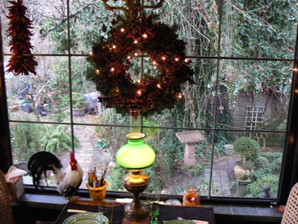 the kitchen. The black door reminds me of an old German folk story my Grandmother told to keep us in line, where the "bad children" are threatened with being tossed into the oven. I prefer to think of the delicious Lebkuchen and Spritz cookies that are likely to come out of the oven instead! (I'm getting really hungry now.) |