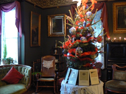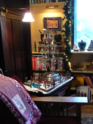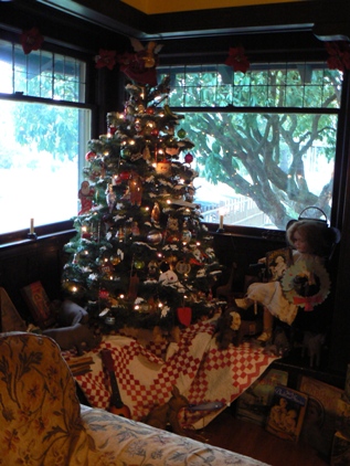 O Tannenbaum! Wie grün sind deine Blätter!" The fragrance coming from the live tree was intoxicating. THIS tree was sans electric lights, just as it might've been in Victorian times. The Germans brought the tradition of Christmas Trees to England via Queen Victoria's husband, Albert. |