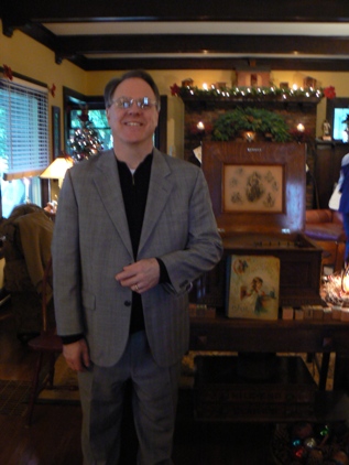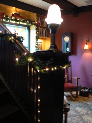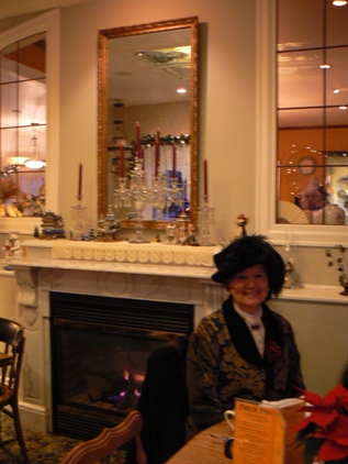 property. Maybe next year, hmmm? We are seated in the front room of the house which has a gas fueled fireplace. The front half was the part of the establishment that had to be rebuilt after a fire broke out a few years back. We met the lovely lady who owns the restaurant and she told us the whole story of the fire and subsequent efforts to reestablish. It was truly a major undertaking but well worth it in the end. The carpentry work was well done and her place shines! |