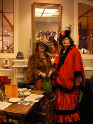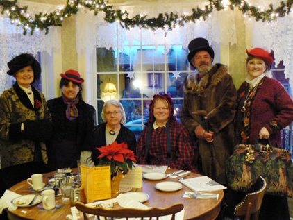 the arbor welcoming folks thru the gate this holiday! We strolled further down the street to pick up some of our group at the Blackman house and then join the rest of our members who were to meet us at the Cabbage Patch Restaurant. With all this stomping around town, gosh, we sure are hungry now! |
