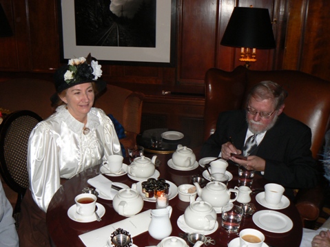 New to SITU, Mark & J look forward to a "proper tea", like they had in England. Miss Marjorie agrees. |