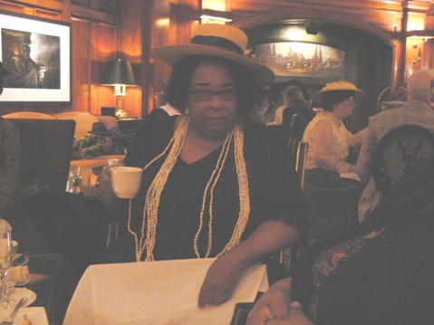 Miss Beverly is commenting how wonderful everything is this afternoon. Even the champagne is great! | Miss Karen is new to SITU this year and this tea is her first event with us. Welcome! |