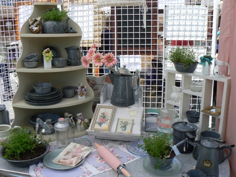 dig through piles of jumble. Notice how the vendor has brought in live greenery to add color and texture to her vintage finds? Lovely.... |