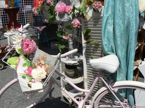 and flowers were displayed. Our ladies assessed the white touring bike, considering it momentarily. Alas, the shopping basket on front might simply NOT be large enough for all the shopping we do when we come to town!!! |