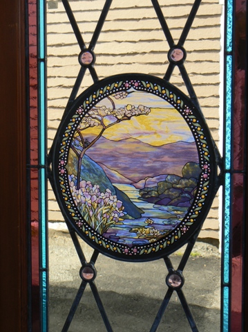 Sir Harry wanted to swing by a particular kind of store for something they had to sell in which he had interest... | Lady Victoria pointed out a store in town with a stunning leaded and stained glass window in a door. Beautiful!!! |