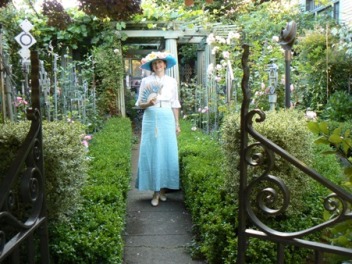 After the parade, we were invited back to the Mayor's residence for dinner. Here, we see the lovely Countess Cassimira in a breezy summer outfit as she strolls thru the garden at the home.