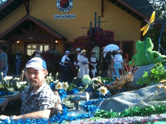 parade. Members and friends of SITU were lined up in the staging area with the Mayor of Snohomish, her husband and their friends. The excitement was building as we watched all the floats and participants begin the process. Snohomish is a small