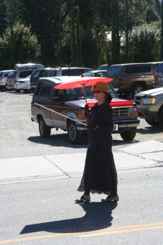 The delightful Miss Marion looks fresh as a daisy in the shade of her large hat! For a day where the temperatures are going to exceed 80F, it is a good thing we begin the parade early! |