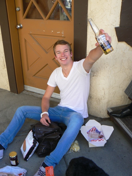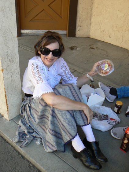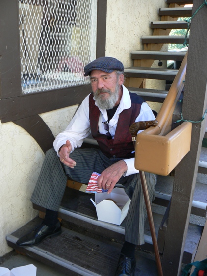 and eat a quick snack. Lady V had pre-packed sandwiches and treats. The Countess Cassimira brought along delicious fruits and fresh salsa dip. Tim had found his own adult beverage to enjoy on this hot day! |