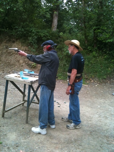 Our friend, Bill, who came along with SITU, is a good shot using his own gun. It was going to be a challenge to him to use an array of single action firearms. |