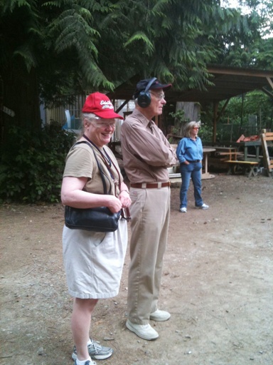 imagine having to be in a corset and multiple layers of clothing! Miss Bobbie and John already have their ear and eye protection in position. They are looking forward to the evening. Everyone is most excited! |