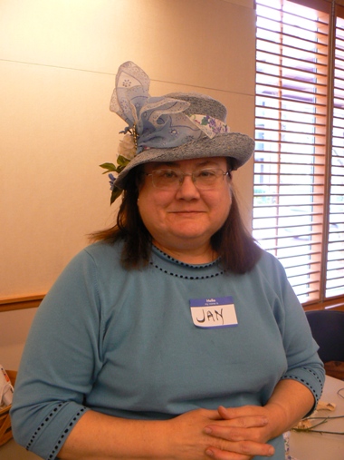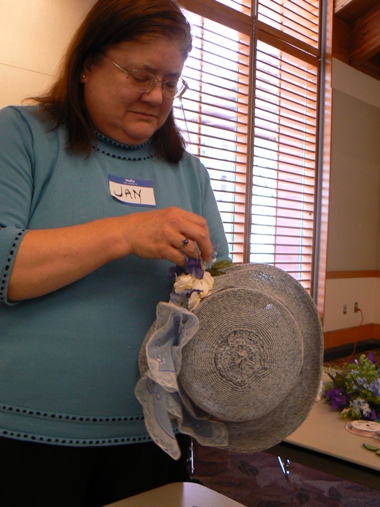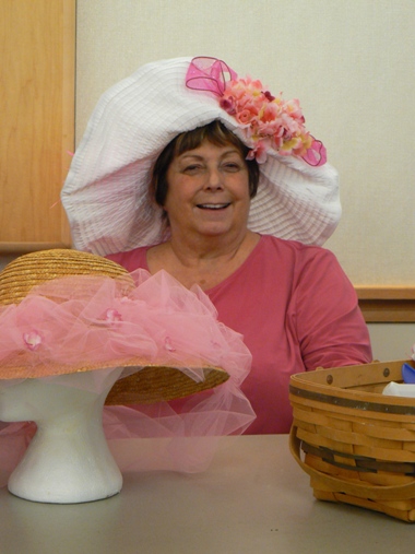 Another participant wanted her hat to do "double duty" - Easter Parade AND Red Hatter's Club! |