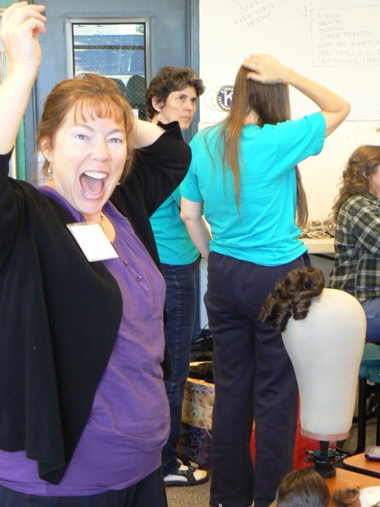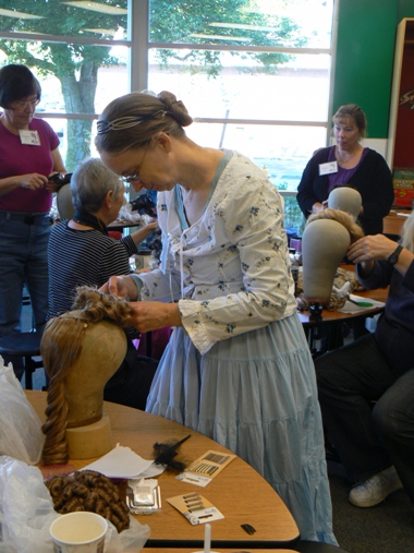 called Somewhere in Time, Unlimited, met at a Ballard neighborhood location to learn about historically accurate hairdressing. Everyone