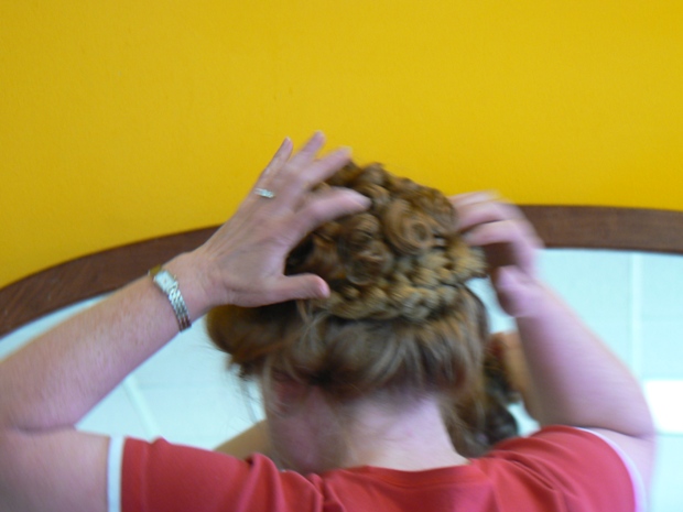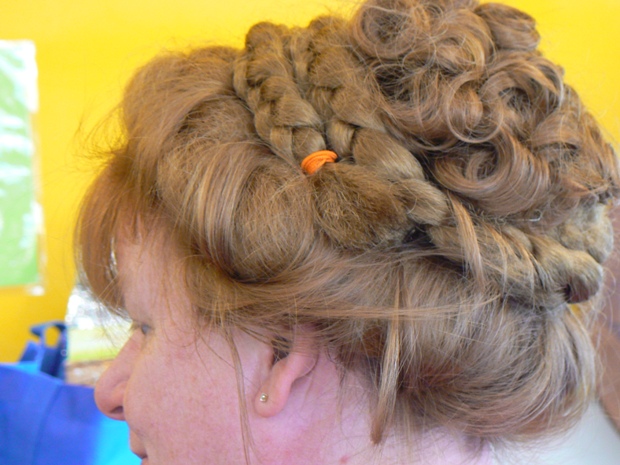Again, a hairstyle put together quickly and easily, provided you have the hairpieces! We turned our attention next to a participant with