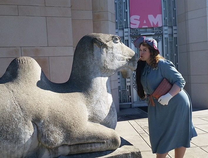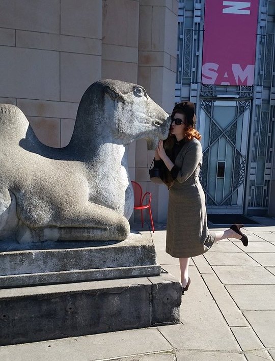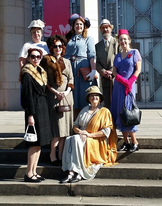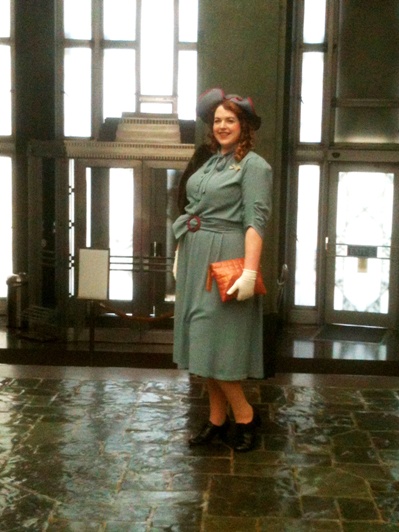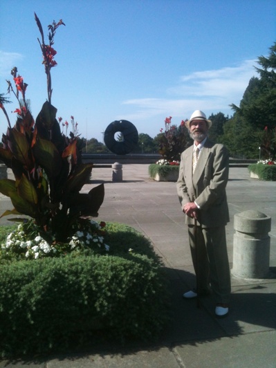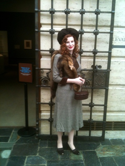 in early October, several friends and members of the historical costuming group Somewhere in Time, Unlimited gathered on the steps of the Seattle Asian Art Museum, located at Seattle's historic Volunteer Park. The organizer of our gathering on this day was the delightful and vivacious Miss Vanessa. |