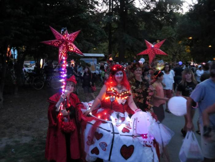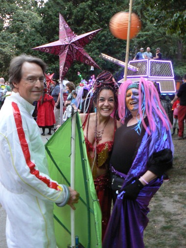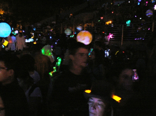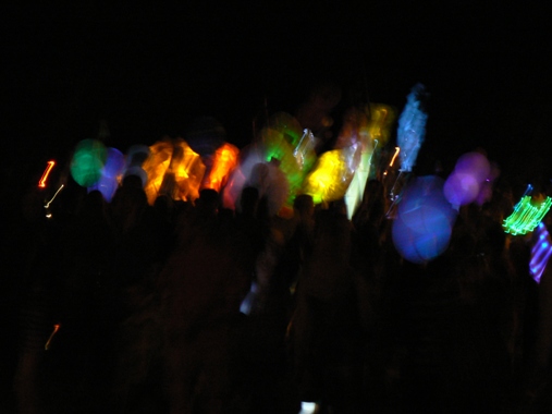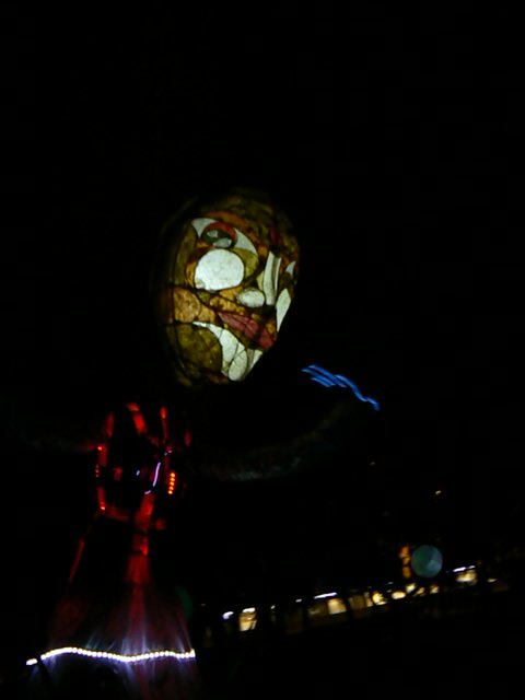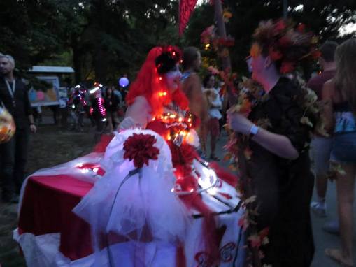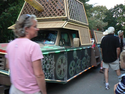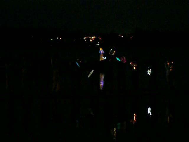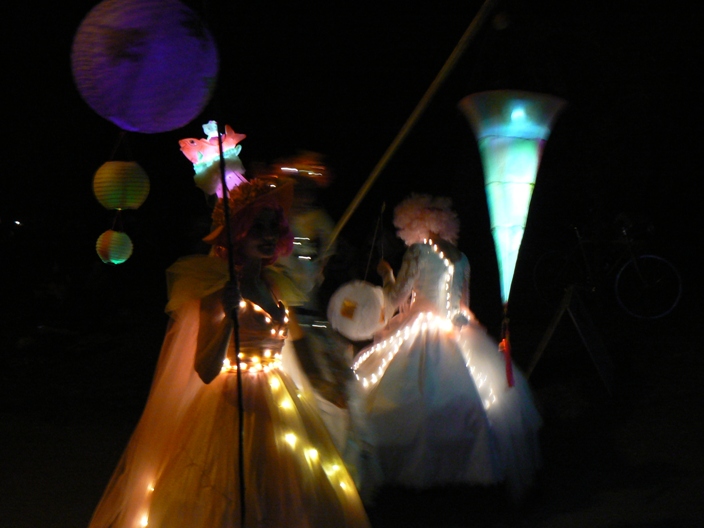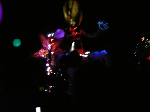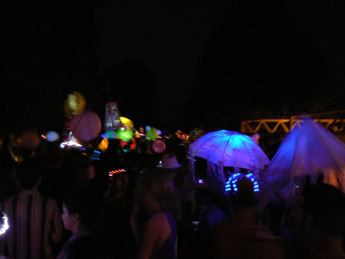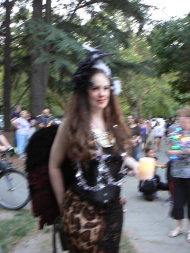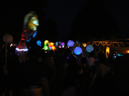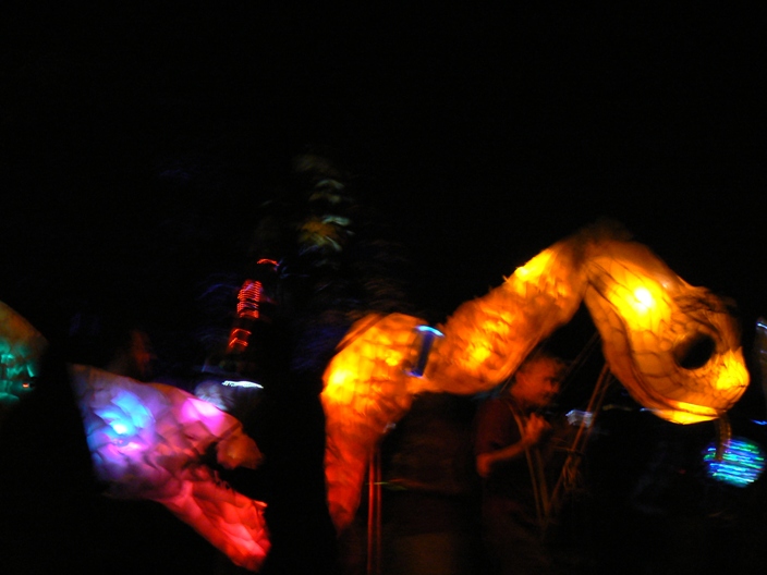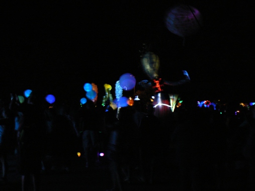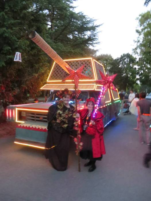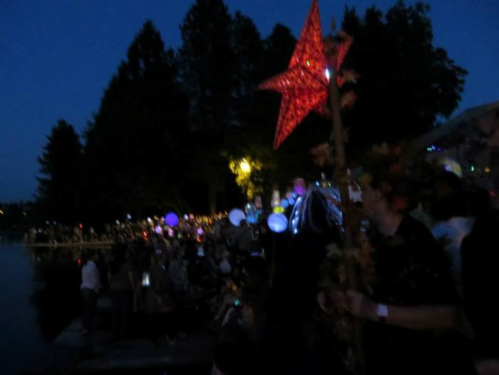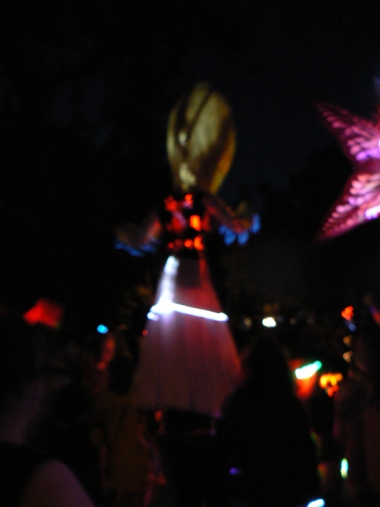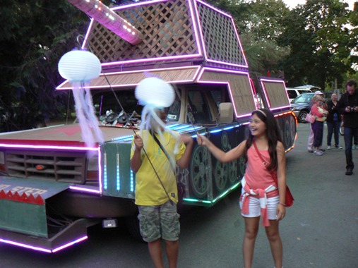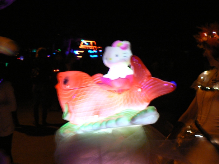 "Black Angels" were just as likely to be seen on the path of the lake as children lighting lanterns with tails. Pictured above, is an amazing float. The people who created it, had LED sort of lights that could change color, outfitted it with large speakers for music and featured a "cannon" out the front. The whole thing was a "tank." |