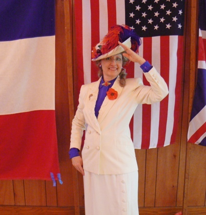 waltzes, fox trots, polkas, and even something new - the Charleston! We brought pictures of our soldier or other family member who served, as we wanted to salute them. We enjoyed a wonderful baked ham and beverages (cider and tea). People brought side dishes and desserts to share. We celebrated in a charming, but modest structure (new in 1919!) at the Highland Park Improvement Club in Seattle, Washington. |