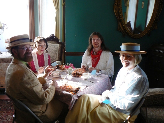 was the man laying in the road? It was a dark, stormy start to the week back in October, when the members and guests of Somewhere in Time, Unlimited, packed themselves into modes of transportation and ventured far south of Seattle to visit the famous Meeker Mansion. Upon arrival at the mansion, each participant was handed an envelope containing both description and name of the character they were playing, as well as the first set of clues in the murder mystery game. The story goes that on Sunday,