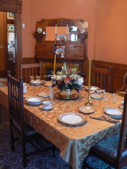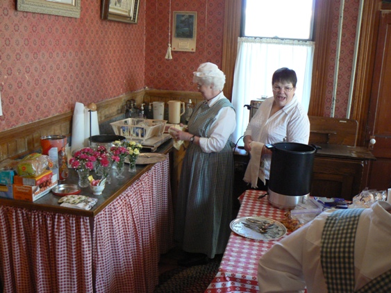 Festively set table in the formal dining room. | Ladies, can we take you away from your duties? | ||