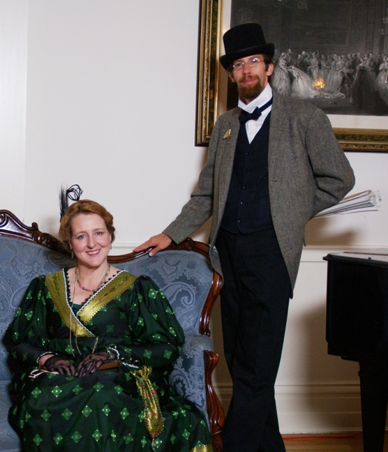Pictured here: Two guests pose with the delightful Miss Susan on the settee.