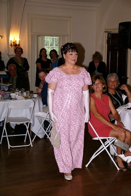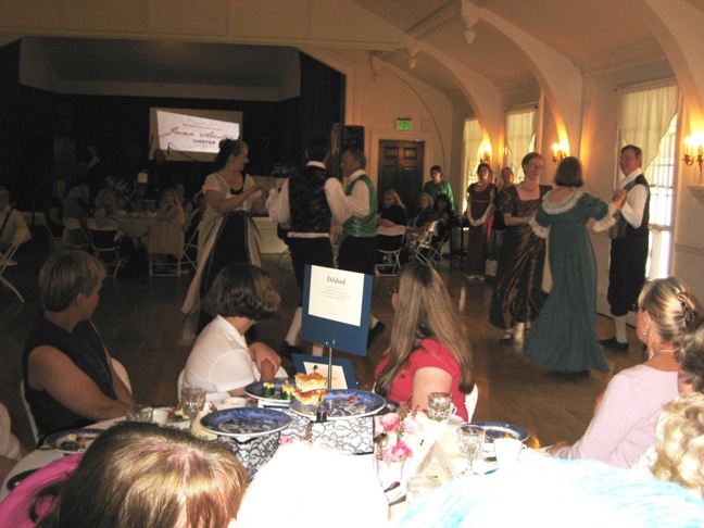 Pictured here: The upstairs ballroom (with stage) of the DAR was the perfect setting for the tea. Guests enjoyed wonderful delicacies catered in, tea provided by Queen Mary's Tearoom, a dance performance by Nonesuch Dancers and a fashion show by members of SITU. | ||