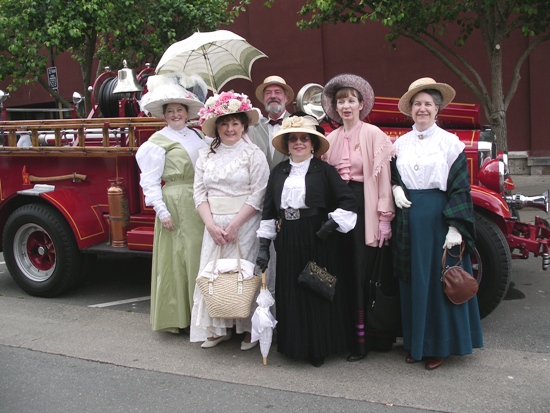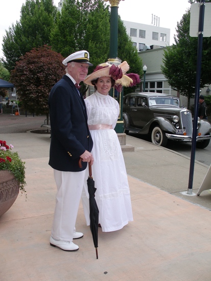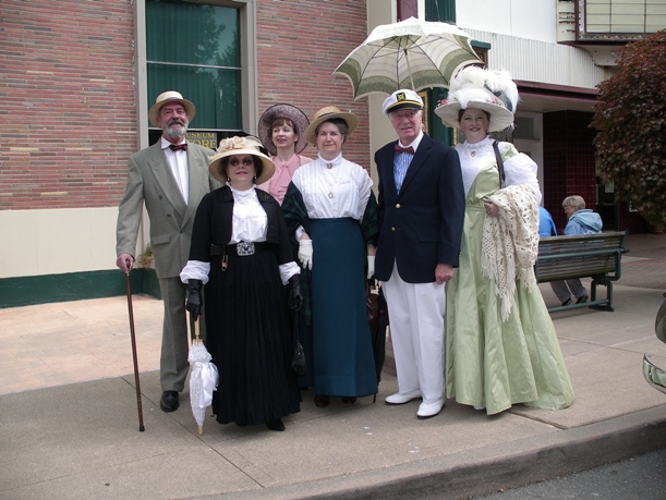 out front of the museum. There were a number of people who would stop the group to take "close-ups", comment on the costuming, ask questions about the exhibit and in general, express interest and happiness that a romantic era was being revived right here in Bremerton! |