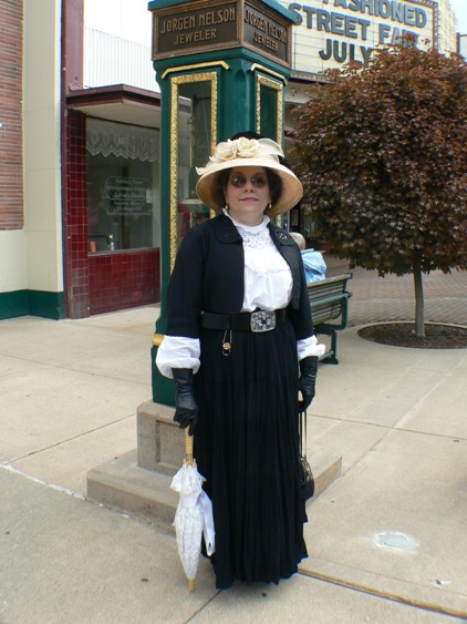 size. The belt buckle, lace blouse and parasol were wonderful "finds" for her outfit too! |