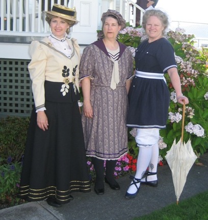 Photos are of three Somewhere In Time, Unlimited members who dressed in costume to help celebrate the 100th anniversary of the well- known Mukilteo Lighthouse located in Mukilteo, WA. Our costumed group has been invited to attend the coming year's function by participating in the parade which ends at the lighthouse. For more details, click here! |