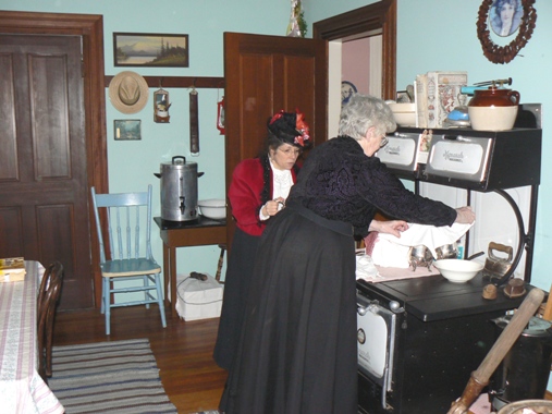 themselves in the kitchen checking on the hot water supply. The vintage stove actually does a great job & Miss Pat knows how to work it!!! |