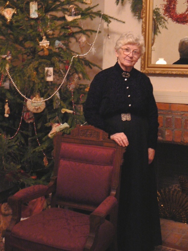 glass and festooned in holiday greenery welcomed the members of Somewhere in Time, Unlimited to the historic Neely Mansion in Auburn, Washington. As people