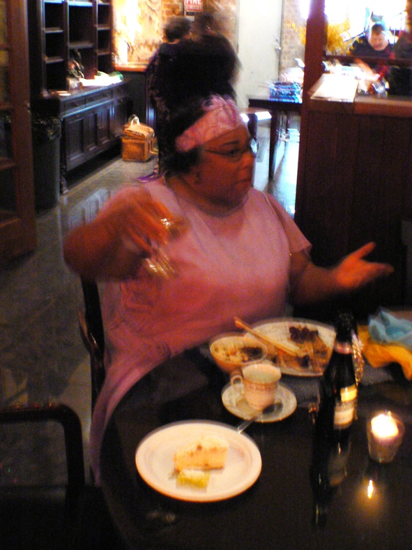 Everything seemed to be going along brilliantly. The food had been enjoyed, the hooch was flowing from undisclosed locations and the dancers were in fine form. Suddenly, from out of no-where, a "TWEEEEEEET" of the infamous whistle. "Da COPPERS!!!!" Rose had warned us and now here was a representative of the Georgetown Police rushing in to arrest poor Lily and break up the party! | ||||||