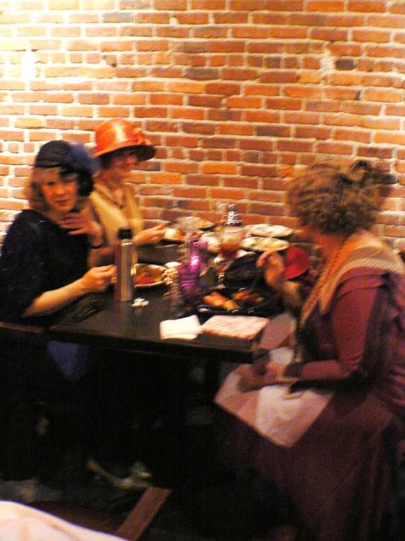 "Hemmingway cousins" were at it again, sans spouses this time. What would the men say if they came home to find their wives having enjoyed an evening of "drinking tea" without them? Best take home some fortune cookies and "tea" for the men. |
