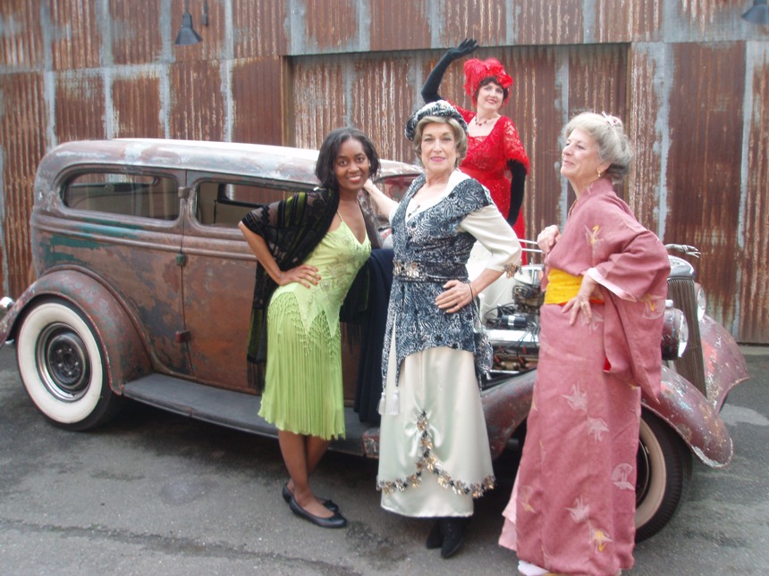 "Shanghai Lily" and friends are vamping it up for the cameras. She seems intent on letting "Rose" distract "O'Flynn" while the group poses. | ||||||