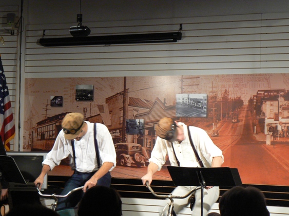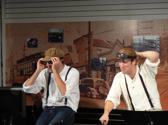inside." The play is based upon a book called "Two Wheels North". It is the story of two very young boys from California who decide to cycle their way north to Seattle in order to see the Alaska Yukon Pacific Exposition. A local newspaper is willing to pay a prize if the boys make it to town. The boys push hard across mountains, streams, ravines, and out of the way of a steam train coming thru the tunnel. The book is one of those "must reads", full of incredible details and heartwarming fun. |