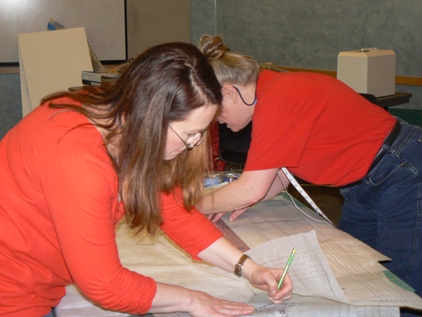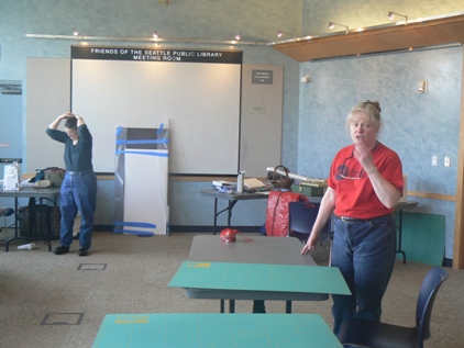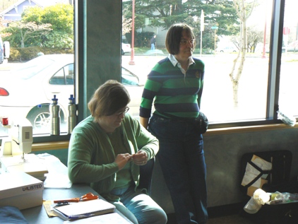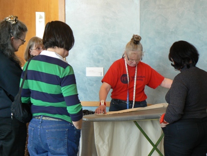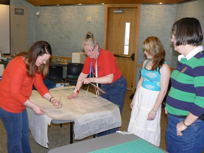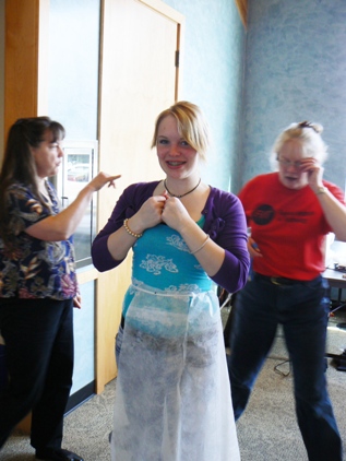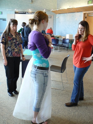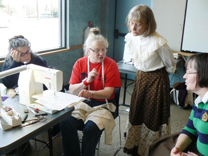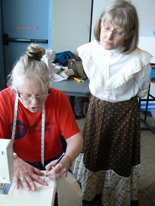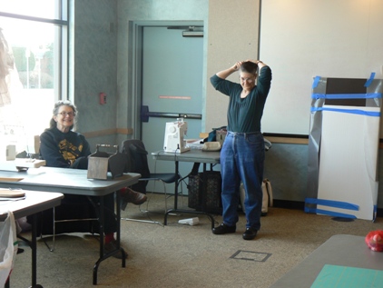 Here are two new members to SITU. One is a Scandinavian folk dancer who enjoys costuming with us, the other is a steam-punk enthusiast who is creating a crisp skirt from her striped fabric. | ||