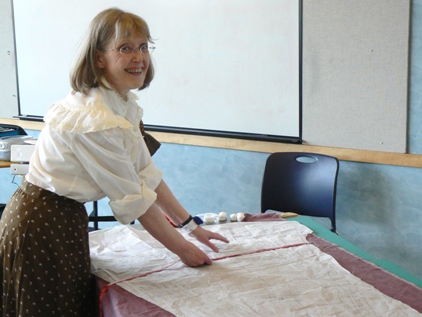 called "The Quilted Tulip". Below you will find a few of the photos taken of the participants and the instructor of this workshop, "Miss Bobbie". |
