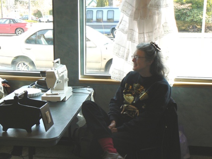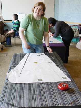 "Miss Bobbie" does a pattern fitting. |